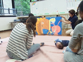 今回は絵本やふれあい遊び、パネルシアター、ビックブックの読み聞かせがありました。